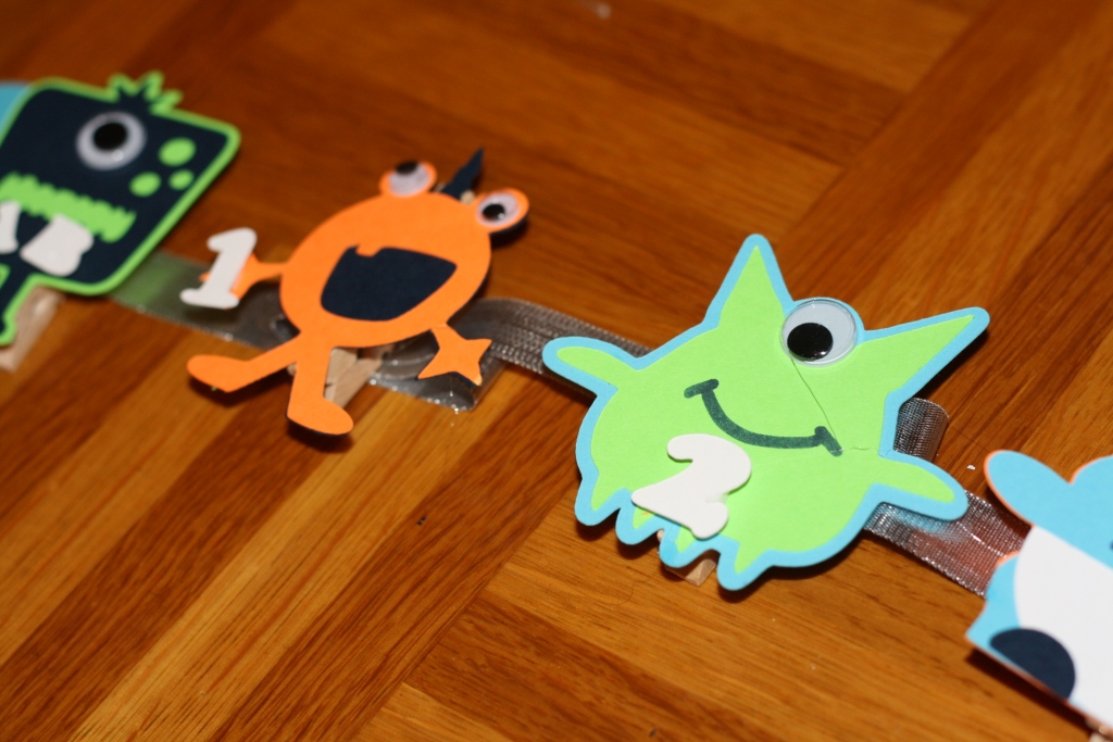 It was a little tricky finding a spot for the month as these monsters weren't designed to have a spot for them, but I popped them off with 3D blocks so some are holding the number in their hands and others have the number on their bellies.